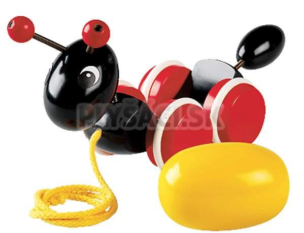 Ťahací mravec s vajíčkom je vyrobený z kvalitného dreva natretý nezávadnými farbami. Jedná sa o klasickú jazdiacu a ťahaciu hračku pre najmenšie deti. Vajíčko na chrbte mravca sa pri pohybe otáča. Dĺžka 22 cm.