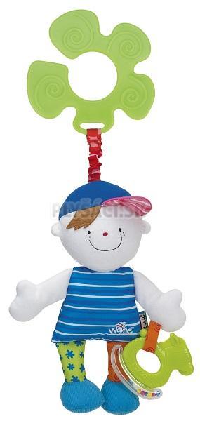 K's Kids - Úchyt na kočík - veselý chlapec Wayne. Veselý chlapec Wayne je panáčik vyrobený z mäkkej a kvalitnej látky a bábätko ho môže stláčať. Hračka vydáva zvuky, píska, šušti a hrká. Vďaka úchytke môžete hračku zavesiť na kočík. Podporuje nielen zrakové vnemy rôznorodou farebnosťou, ale aj hmat a sluch.