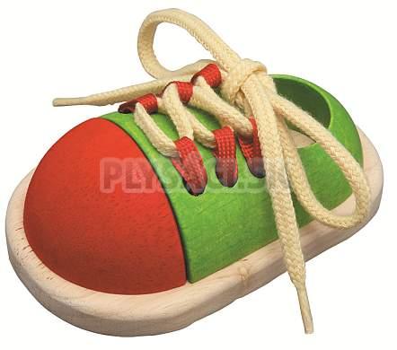 Šnurovacia topánočka učí deti zaväzovanie topánok a zároveň je hračkou na rozvíjanie jemnej motoriky a manuálnych schopností. Drevená hračka Plan Toys má precízne spracovanie, použitý materiál aj farby sú zdravotne nezávadné.